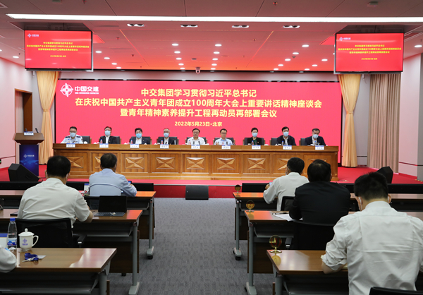 5月23日,中交集团学习贯彻习近平总书记在庆祝中国共产主义青年团成立100周年大会上重要讲话精神座谈会暨青年精神素养提升工程再动员再部署会议在中交大厦召开。中交集团党委书记、董事长王彤宙出席会议并讲话,党委副书记、总经理王海怀主持会议。