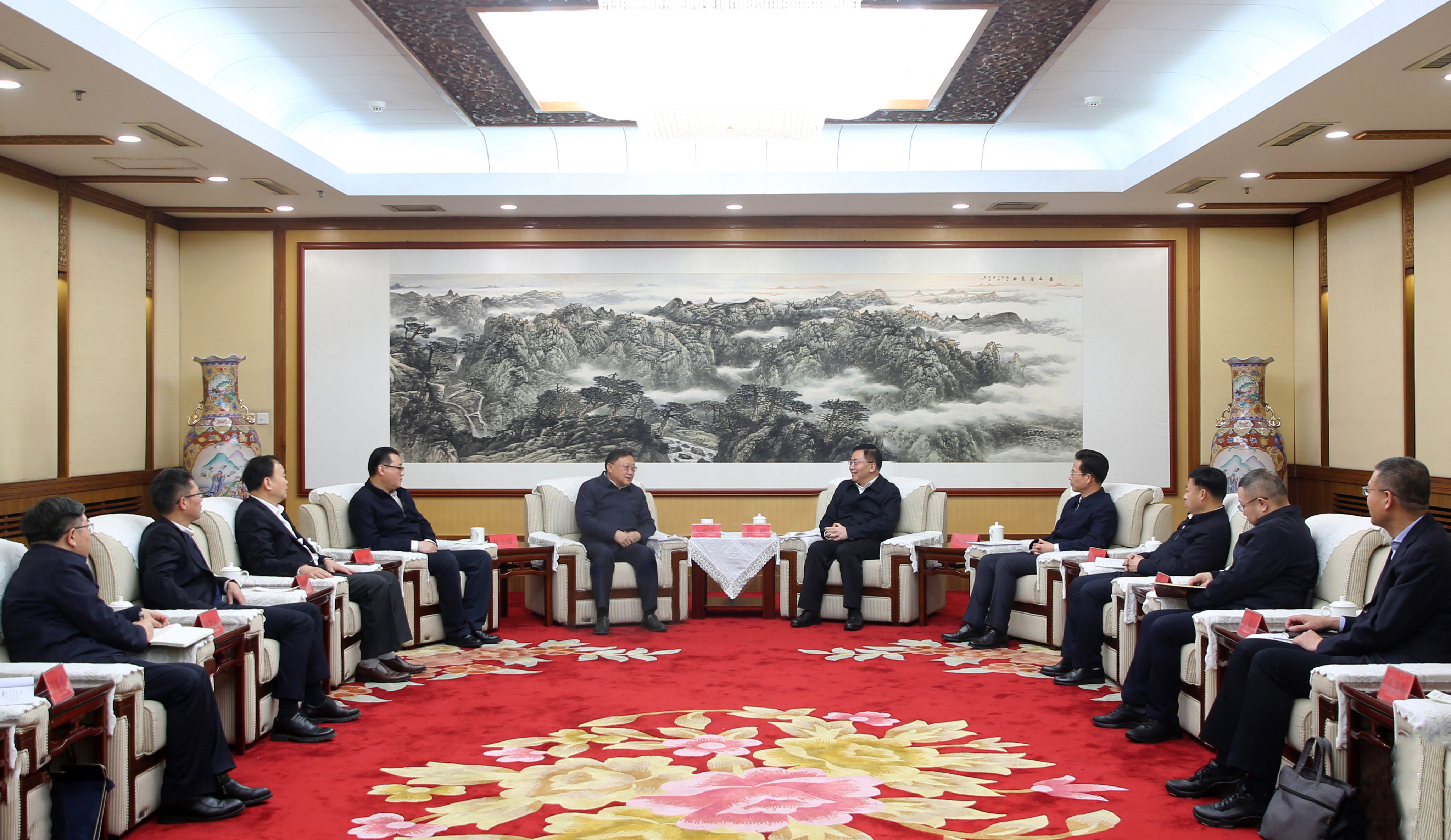 2月22日,中交集团党委书记、董事长王彤宙在呼和浩特拜会了内蒙古自治区党委常委、呼和浩特市委书记包钢,呼和浩特市委副书记、市长贺海东。双方就加强政企合作、共同推进呼和浩特市重点项目建设进行座谈交流。
