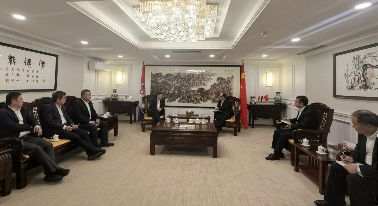 10月6日,中交集团党委书记、董事长王彤宙在萨格勒布拜会了中国驻克罗地亚大使齐前进,双方围绕进一步加强与克方务实合作,助力双边关系稳步发展进行座谈交流。