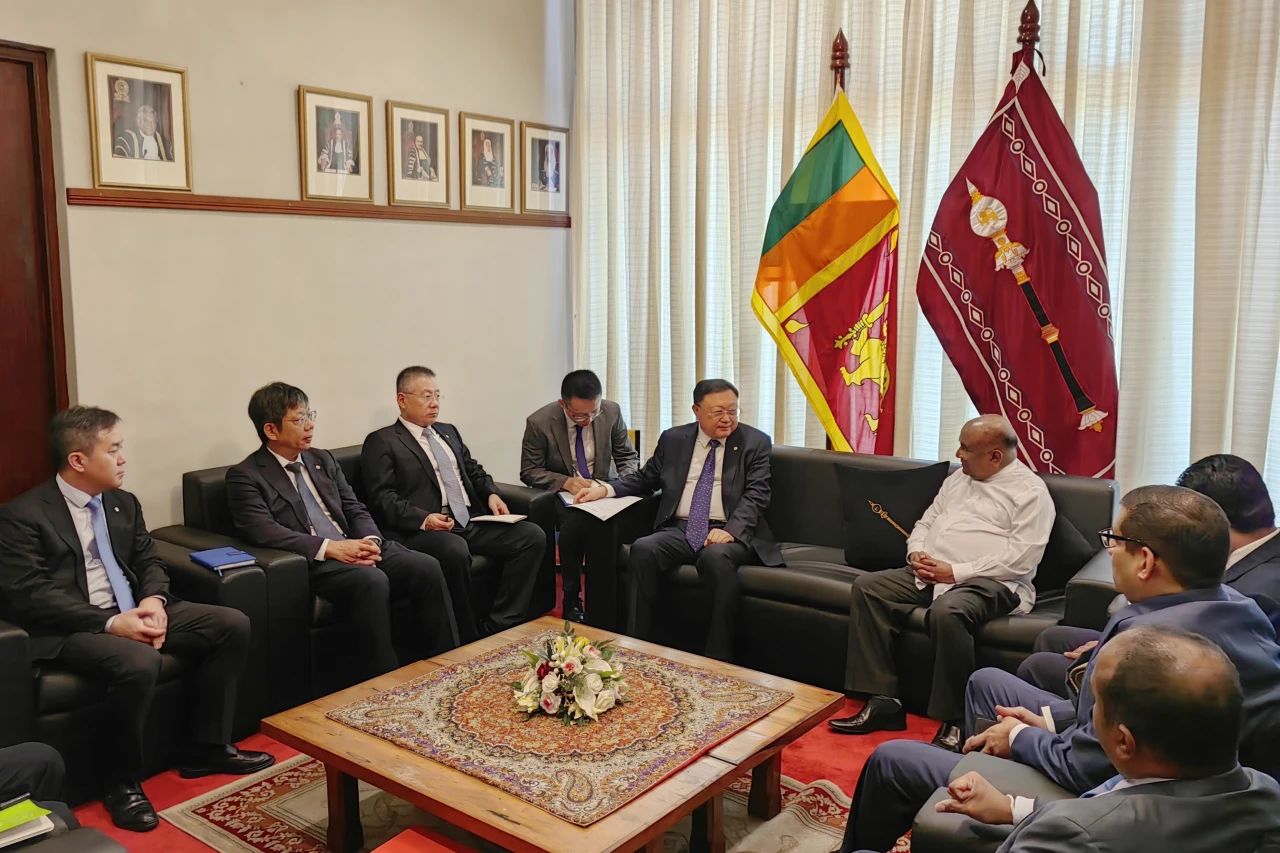 2月27日,中交集团董事长王彤宙在科伦坡拜会斯里兰卡国家议会议长马欣达·亚帕·阿贝瓦德纳,双方就进一步深化务实合作进行座谈交流。