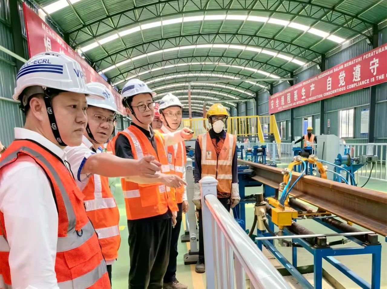 14日,王海怀一行到马东铁项目关丹铺轨基地和遮拉汀车站调研。