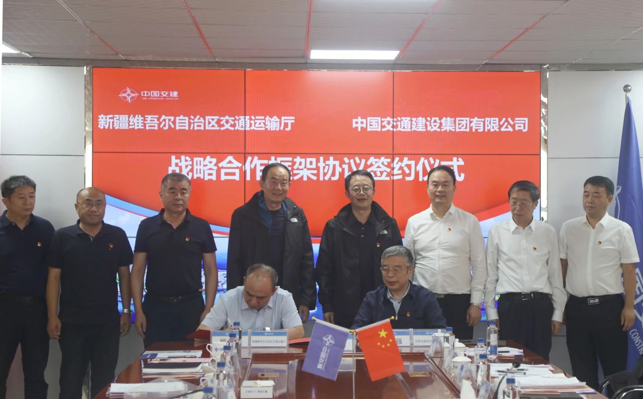 中国交建副总裁孙立强与新疆维吾尔自治区交通运输厅副厅长顾志峰代表双方签署战略合作协议。根据协议,双方将在交通强国试点建设领域开展合作,促进新疆交通运输事业提效能、扩功能、增动能,共同打造政企合作示范标杆。