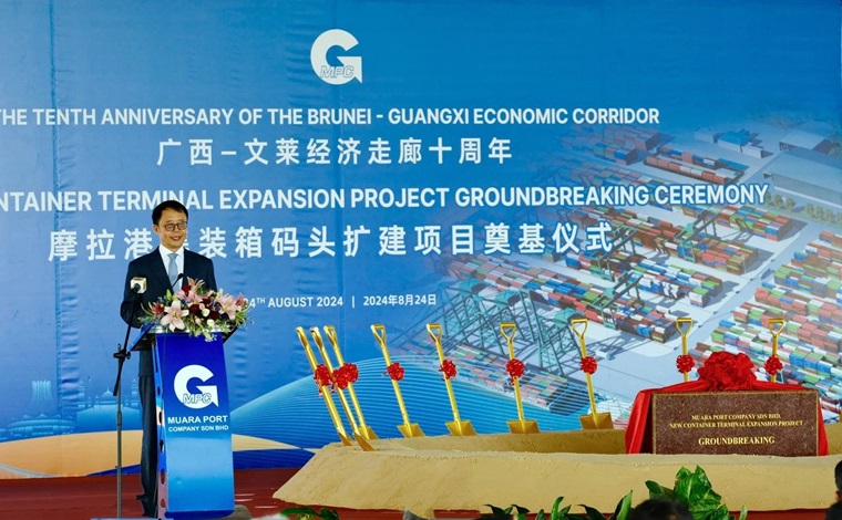 8月24日,文莱摩拉港扩建项目开工仪式在斯里巴加湾隆重举行。文莱首相府部长兼财政与经济部第二部长拿督刘光明、广西壮族自治区党委书记刘宁出席仪式并讲话,中交集团总经理王海怀出席仪式并致辞。