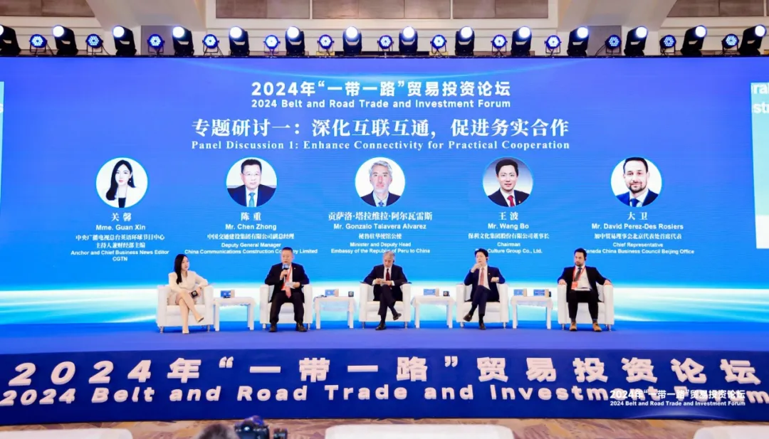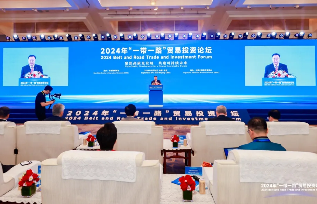 9月20日,2024年“一带一路”贸易投资论坛在北京举行。中国贸促会会长、中国国际商会会长任鸿斌会见了各国工商界代表团团长。多位驻华使节和来自66个国家、地区的500余名政商界代表出席论坛。中国贸促会副会长、中国国际商会副会长于健龙出席开幕式并致辞。中交集团党委书记、董事长王彤宙出席开幕式并作主旨讲话。