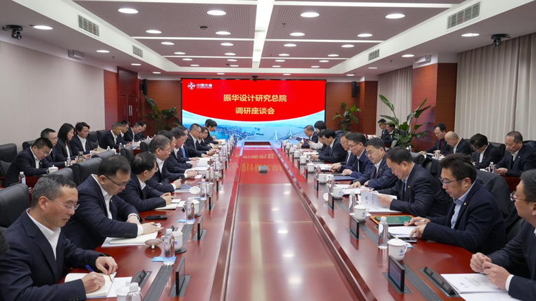 中交集团党委副书记刘翔,党委常委、副总经理裴岷山和刘成云,总法律顾问慈正开、市场开发总监赵晖,相关单位和部门负责人;振华重工领导班子成员,振华设计研究总院班子成员及科技工作者代表参加调研。