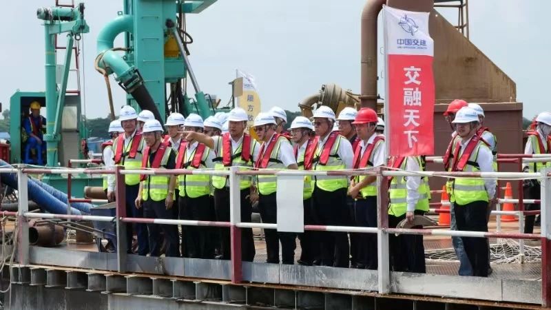 4月18日至19日,中交集团党委书记、董事长王彤宙在柬埔寨召开了公司国别组织工作会议,实地考察了西哈努克省西港经济特区,调研了金港高速公路项目、扶南德崇综合水利工程项目,并对湄公河大桥项目进行“四不两直”检查。