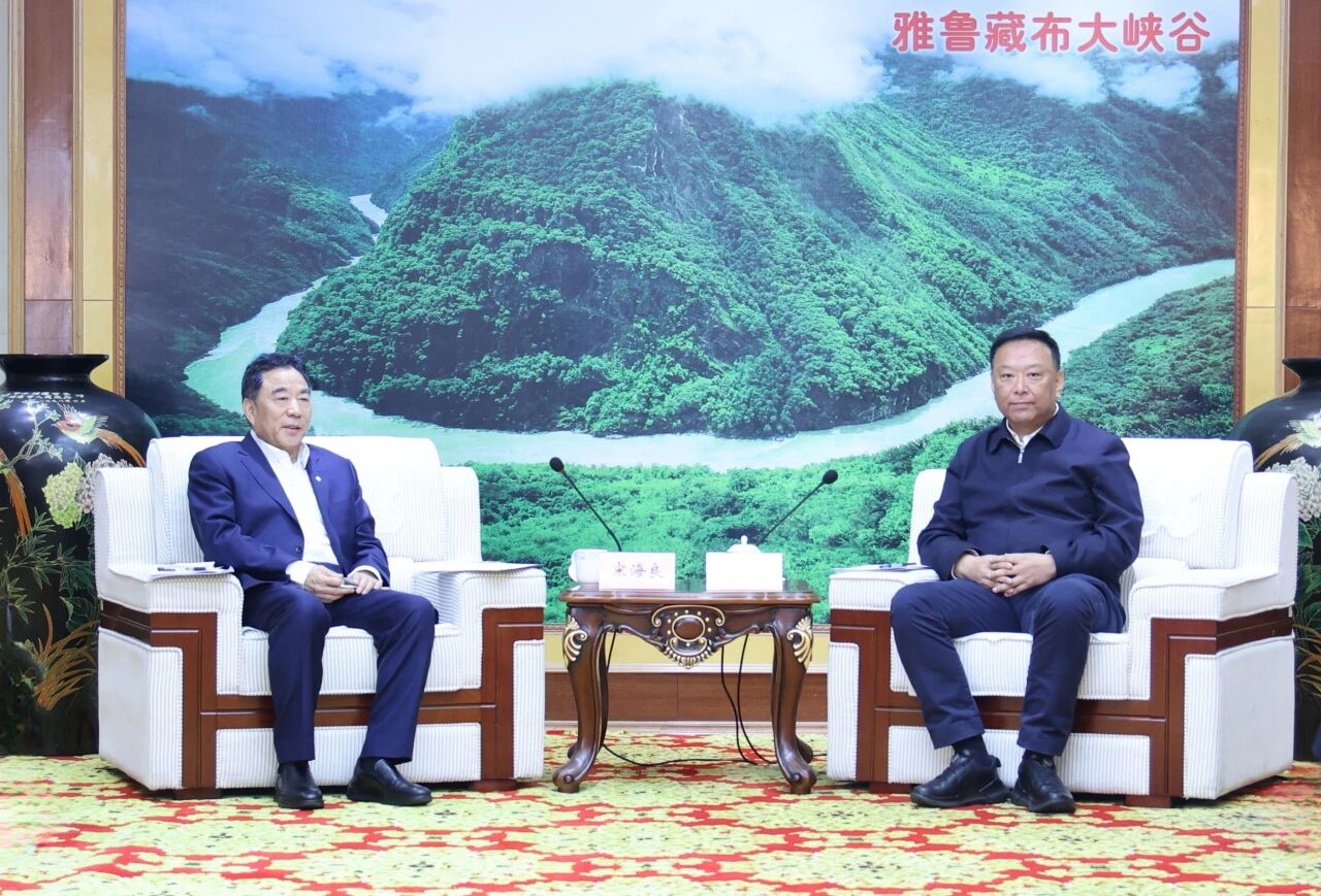 10月20日,中交集团党委书记、董事长宋海良在西藏林芝市与林芝市委副书记、市长巴塔举行会谈。双方围绕交通基础设施建设、高原特色城市发展、清洁能源开发利用、生态环境保护等重点领域,就贯彻落实国家战略部署、助力林芝高质量发展进行深入交流。