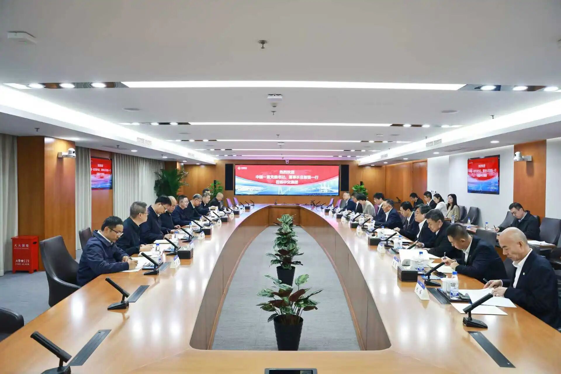 宋海良对吕智强一行的到访表示热烈欢迎,对中国一重长期以来给予中交集团的关心和支持表示感谢,并介绍了中交集团发展情况和核心优势。他表示,中交集团深入学习贯彻习近平总书记“2.26”重要批示精神,在交通基础设施建设和装备制造等领域坚定不移强化科技创新引领,奋力加速推动产业转型升级。中国一重被誉为“中国制造业第一重地”,聚力攻关“国之重器”,在高端装备制造领域树立了行业标杆,与中交集团合作基础扎实、合作前景广阔。中交集团愿发挥自身全交通、全城市、全水域、全绿色、全数字,大海外、大装备、大产业、大融合,科技创新型、综合交通型、新质基建型、全球领先型、融合发展型“五全四大五型”领域一体化、综合化、融合化系统集成优势,秉持一重有需求、中交有优势、双方有共识、双向有奔赴、合作有共赢的“五有”原则,聚焦高端装备、高端材料、科技研发等领域推动与中国一重合作实现机制化、表单化、项目化,尤其是深化双方在中国标准与装备“走出去”等领域的务实合作,实现优势互补、共赢发展。