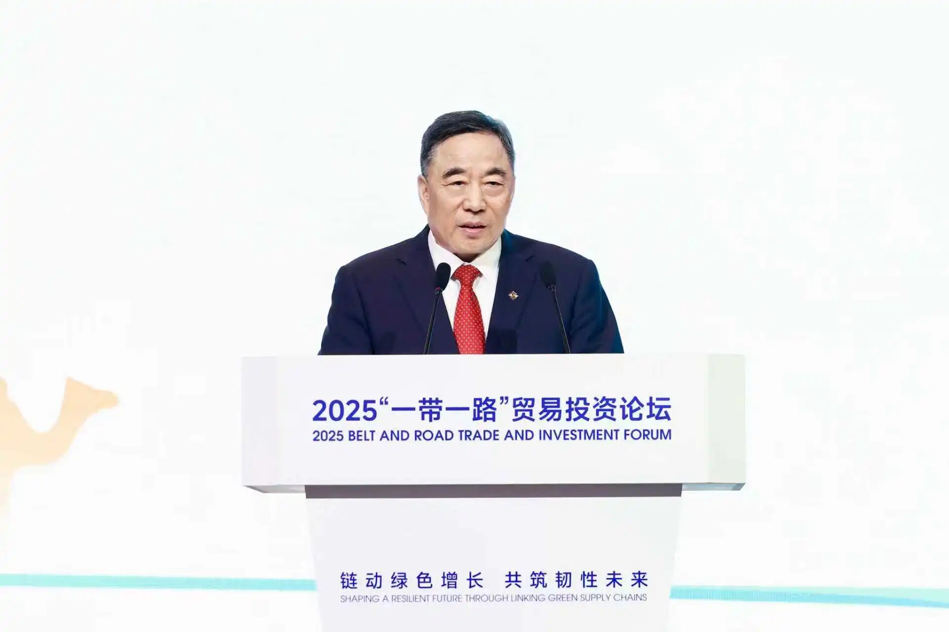 11月7日,2025“一带一路”贸易投资论坛在北京举行。中国国际贸易促进委员会会长、中国国际商会会长任鸿斌,中交集团董事长宋海良,以及来自塞尔维亚、老挝、古巴、伊朗等国工商会代表出席论坛开幕式并致辞。