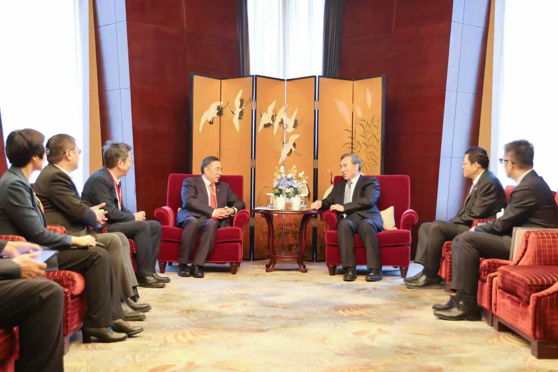 开幕式前,宋海良与任鸿斌举行会谈。宋海良表示,感谢中国贸促会、中国国际商会一直以来给予中交集团的关注和支持,中交集团将在中国贸促会、中国国际商会的指导下,发挥在“五全四大五型”领域的一体化、综合化、融合化系统集成优势,持续深耕“一带一路”,全力推动“八网融合”,并积极参加商会组织的链博会等重大活动,推动国际化经营再上新台阶。任鸿斌表示,中交集团多年来深入践行“一带一路”倡议,全面加强国际间务实合作,促进了项目所在国经济社会发展。希望中交集团继续发挥优势,继续与各方保持密切合作,共同推动“一带一路”高质量发展。