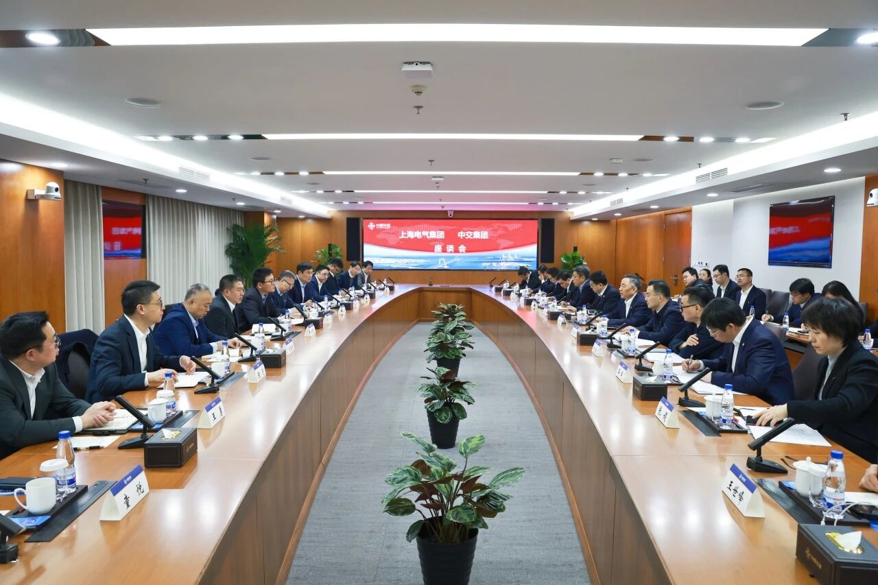 中交集团党委常委、副总经理刘成云,中国交建党委委员、副总裁杨志超,上海电气集团党委委员、副总裁金孝龙和贾廷纲,双方相关部门和单位负责人参加会谈。