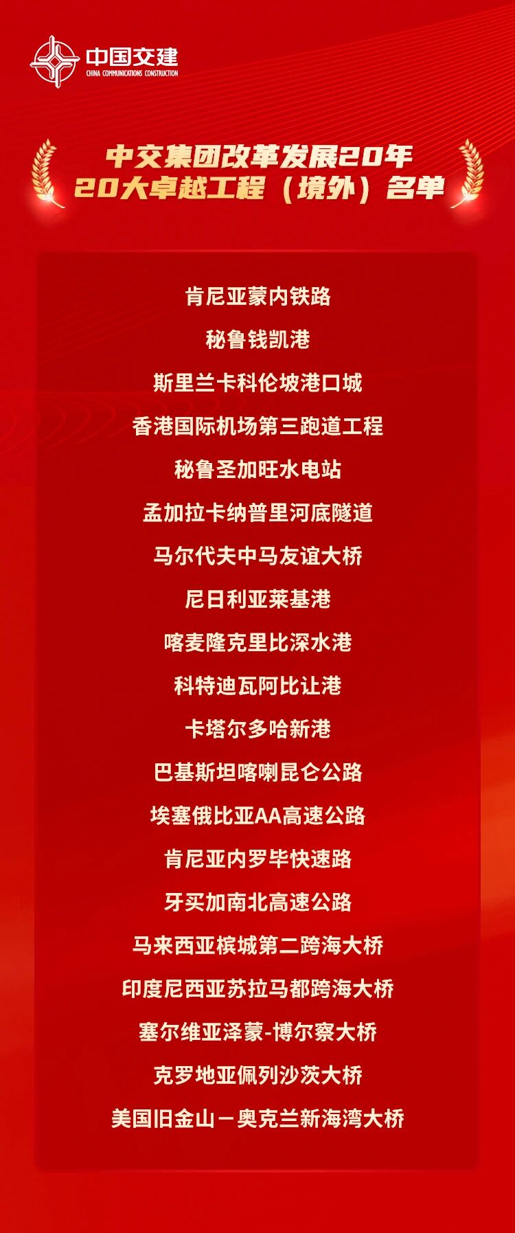 “中国建造·改革发展20年20大卓越工程(境外)”