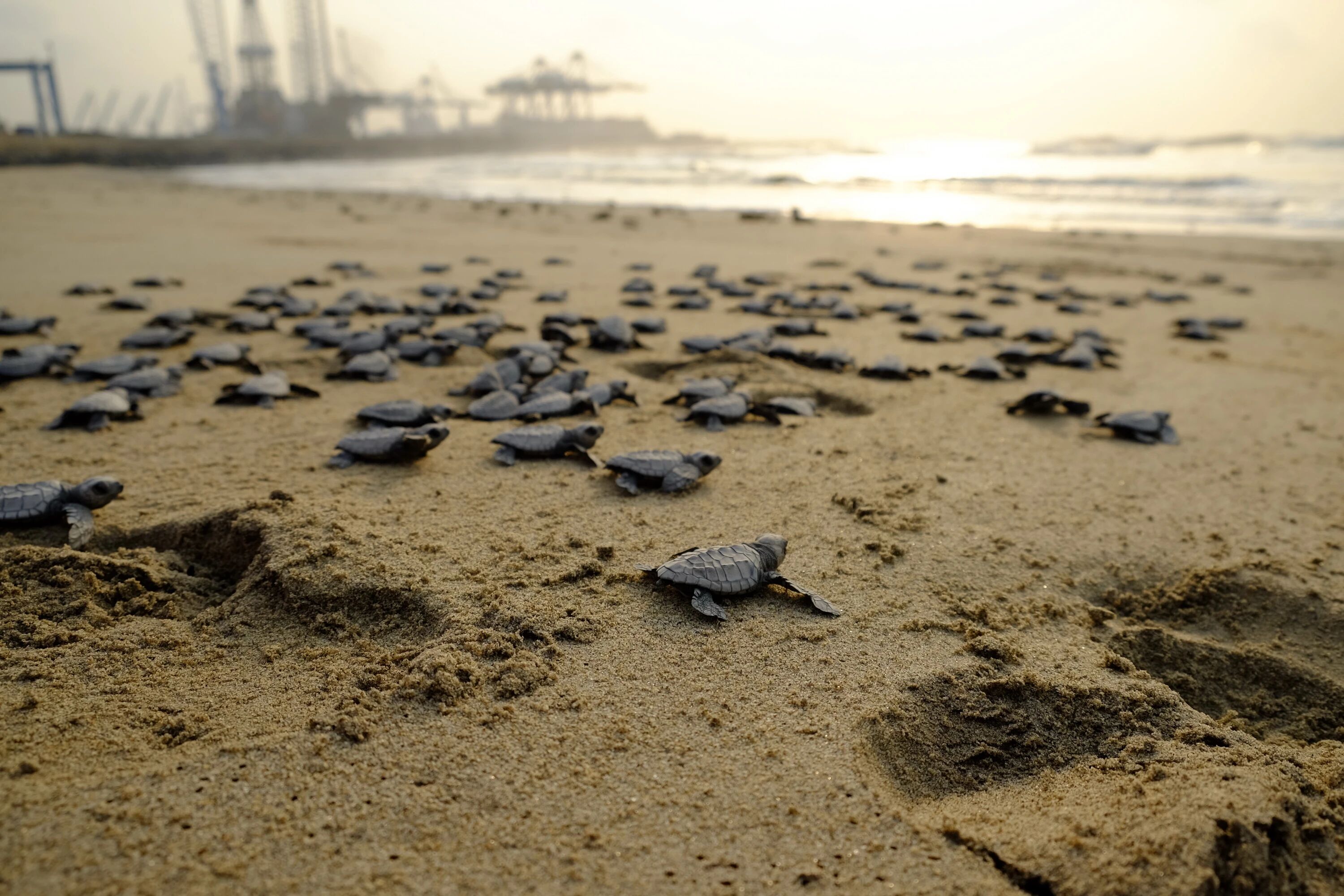 中交集团加纳特码新集装箱码头项目位于非洲几内亚湾,施工区域是海龟的重要产卵地,全球5大类海龟在此出生。项目团队在海滩上设置“中国产房”——海龟孕育中心,组建海龟保护巡逻队,投入专业设备,联合加纳野生动物保护协会等,共同编制《海龟和海洋哺乳动物保护计划》。截至项目完工,累计收集海龟蛋21684枚,成功孵化放生海龟17087只,生态成效与社会效益同步凸显。