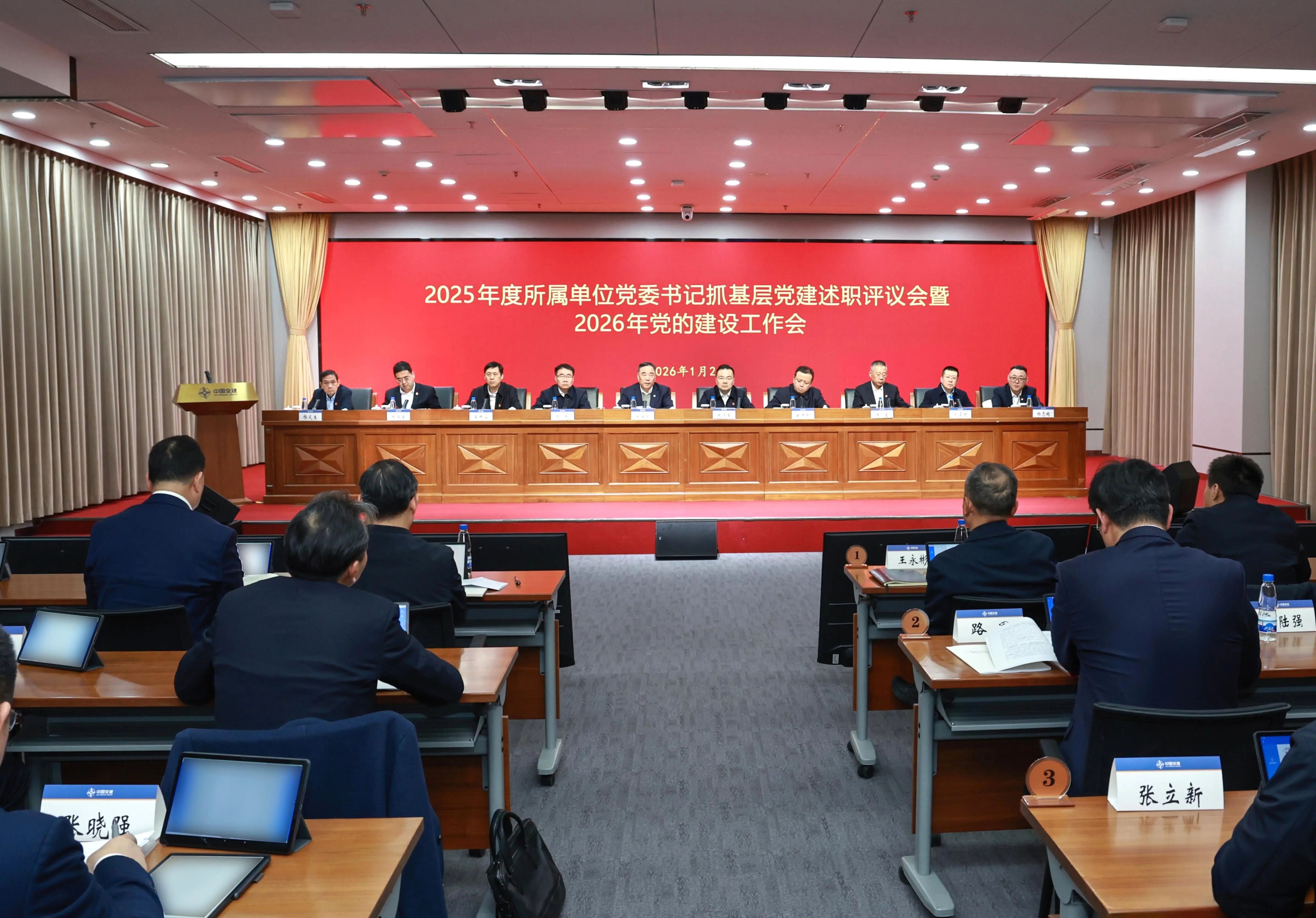 1月21日,中交集团党委召开2025年度所属单位党委书记抓基层党建述职评议会暨2026年党的建设工作会议,以高质量述职评议考核压实党建工作责任,总结2025年党建工作,部署2026年党建重点任务,为推动《总体指导意见》落地见效提供坚强政治保障。公司党委书记、董事长宋海良主持会议并讲话,公司领导班子成员出席会议。