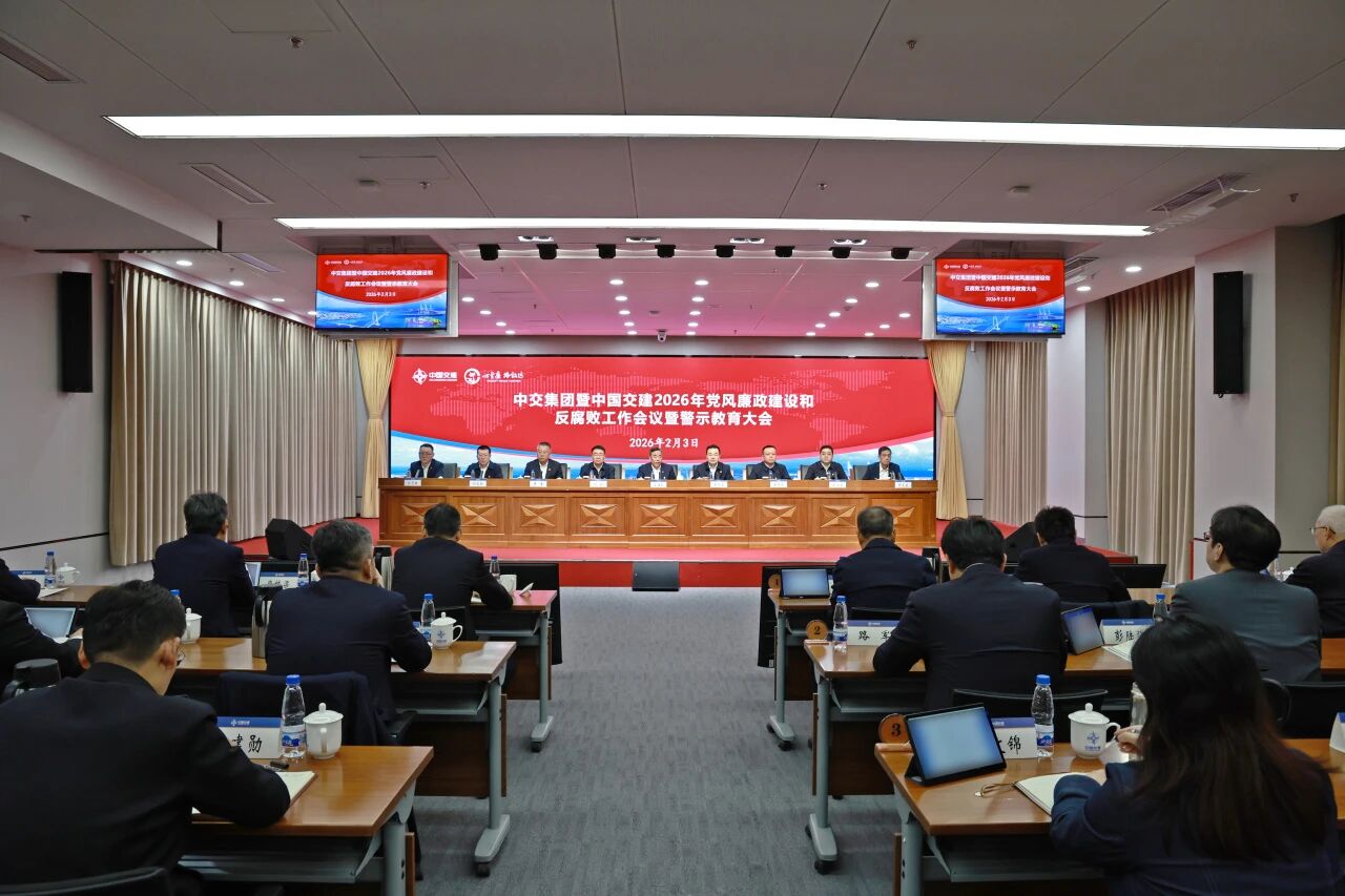2月3日,中交集团暨中国交建2026年党风廉政建设和反腐败工作会议暨警示教育大会在中交大厦召开。会议深入贯彻党的二十大和二十届历次全会、中央纪委五次全会精神,认真落实国务院国资委党风廉政建设和反腐败工作会议要求,总结2025年党风廉政建设和反腐败工作,部署2026年工作任务。公司党委书记、董事长宋海良出席会议并讲话,党委副书记、总经理张炳南主持会议,党委副书记刘翔进行警示教育通报,纪委书记敏珠勒作工作报告,公司领导陈重、刘成云、刘正昶、杨义生、杨志超出席会议。