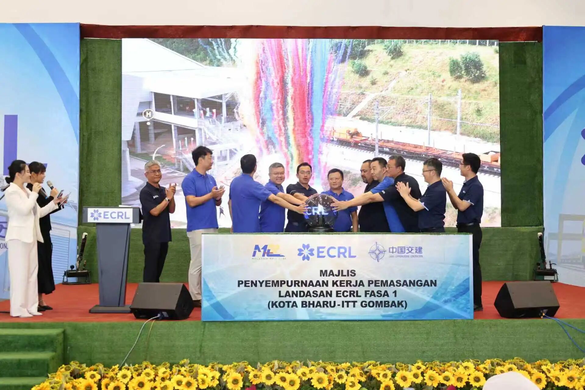 2月5日,中国交建马来西亚东海岸铁路项目在鹅唛车站铺轨工程现场举行一期工程(哥打巴鲁至鹅唛)全线轨道铺通仪式。马来西亚铁路衔接公司首席执行官拿督斯里达维斯出席仪式并致辞。