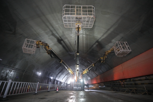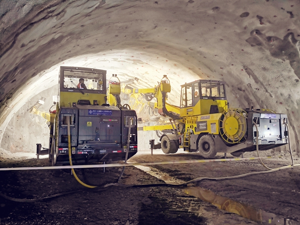 每台机器人各有绝技。比如,湿喷台车只需2名操作手,即可完成传统8到10人的工作量;自行式液压仰拱栈桥,附带弧形模板,可使仰拱整体一次成型,避免了诸多质量通病;拱锚一体机可自行完成拱架抓取、移动、就位。“13台设备,实现了从地质预报到开挖、支护,再到电缆沟槽施工的全工序无间隙机械化施工,安全、质量、功效均大幅提升。”陈加宝对“机器人家族”非常满意。