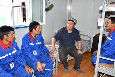 接收这些维吾尔族员工的首要任务,是给他们一个安稳的家,这个“家”安在哪儿呢?贾能文开动了脑筋,距离工地不能太远,要统一管理,要水电设施都方便。经过实地考察,维吾尔族工人生活区被选在了东二环永顺街工地旁。一个星期后,一个相对独立的生活区便建立起来,宿舍、厨房、厕所、浴室生活设施一应俱全,每个宿舍均配备了空调,院内还设立了民族团结宣传栏,栽种了花草树木。第一次出远门来到乌鲁木齐的艾力甫尔·伊吾拉本来十分忐忑,但良好舒适的生活环境很快让他安下心来。“冬暖夏凉,居住环境比和田老家还好一些。”伊吾拉高兴地说。