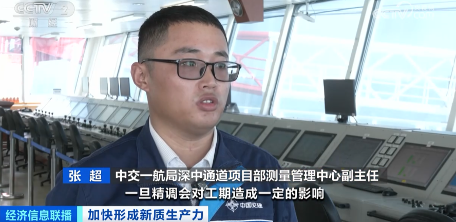 中交一航局深中通道项目部测量管理中心副主任 张超:一旦精调,会对工期造成一定影响,管节安装的时间窗口比较宝贵,一个月只有两个安装的时间窗口,如果精调,船舶的使用、人力物力的使用都会造成一定的浪费。