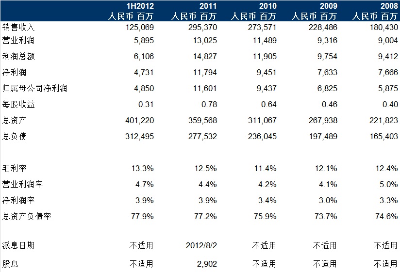 2012年中期财务亮点