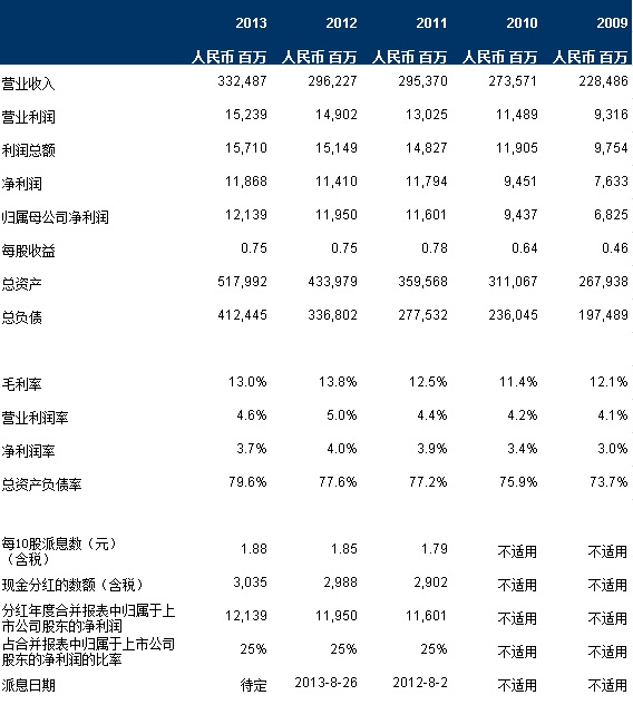 2013年中期财务亮点