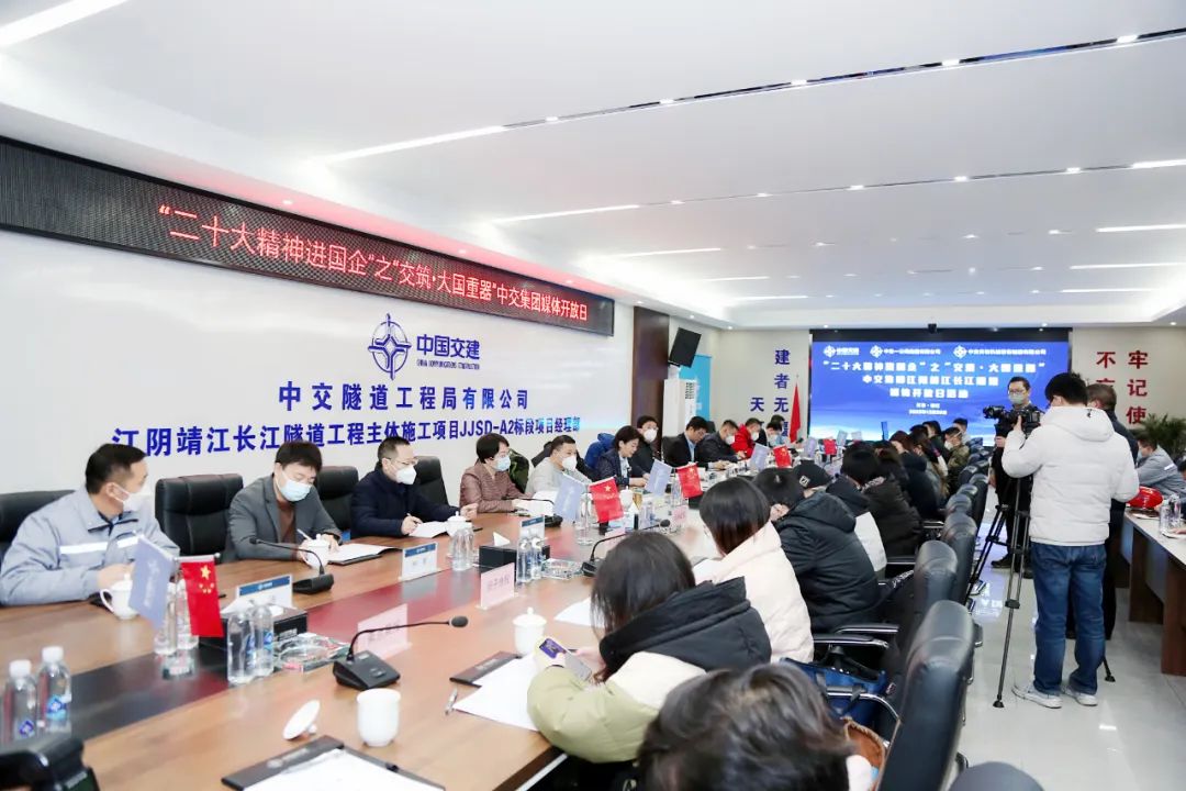 12月28日,由国资委新闻中心指导、中交集团主办、一公局集团承办的“二十大精神进国企”之“交筑·大国重器”媒体开放日活动在江苏江阴靖江长江隧道项目举办。中交集团新闻发言人田菊芳,一公局集团、中交天和有关负责人,新华社、人民网、中央广播电视台总台、《经济日报》、《工人日报》、环球网等13家主流媒体记者汇聚现场,关注中交集团大盾构产业发展情况和科技创新成果。